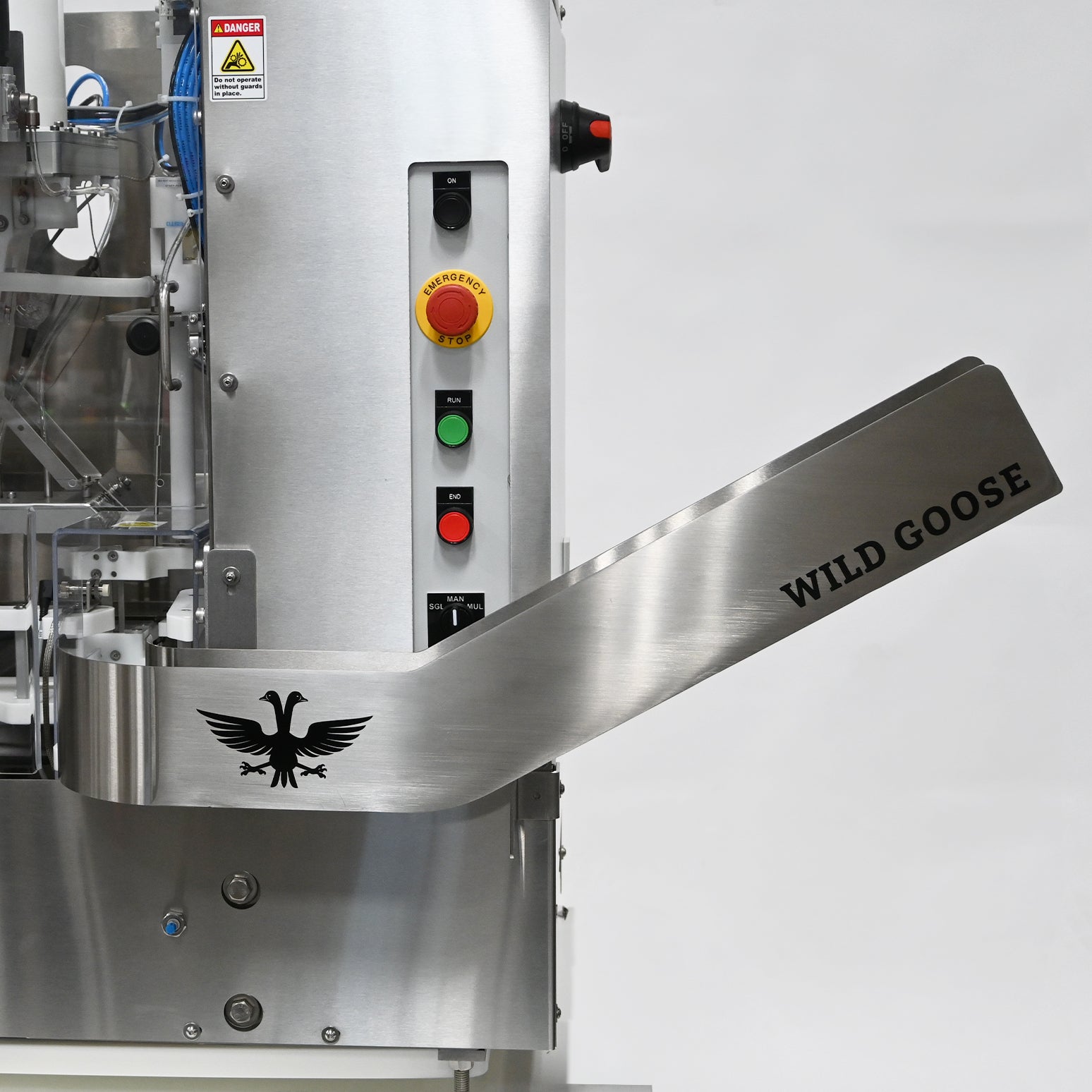 The Gosling GooseNeck Infeed streamlines can loading for your Wild Goose Gosling canning system.